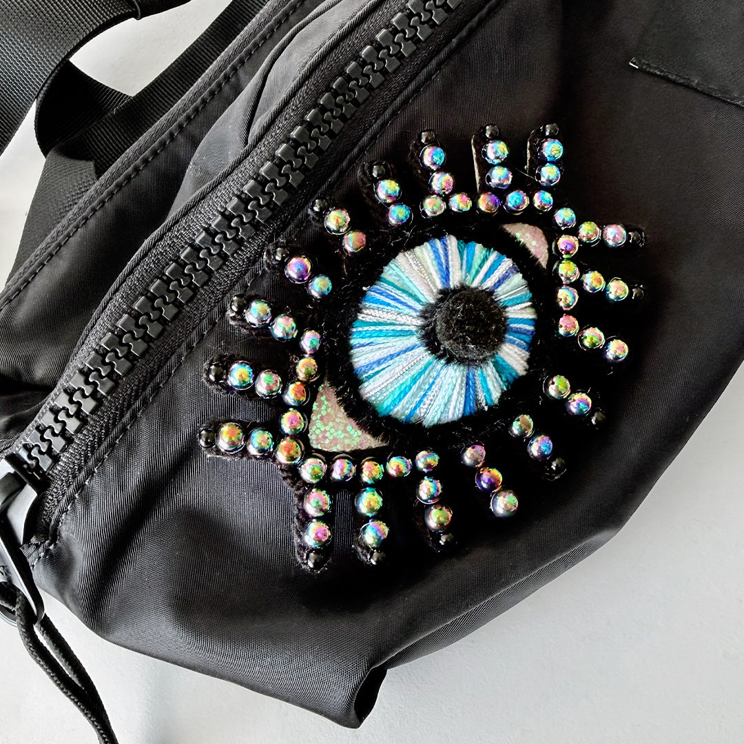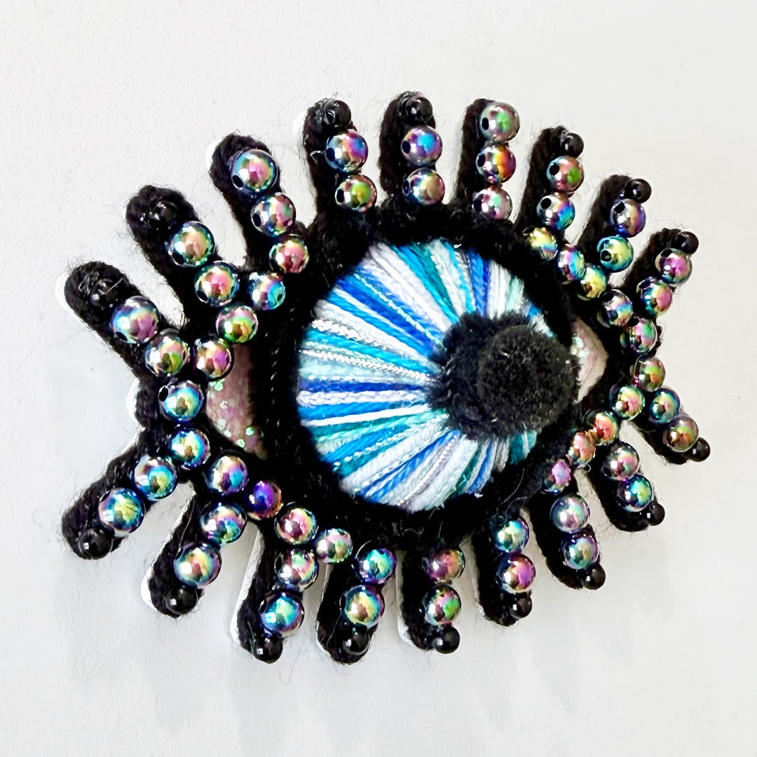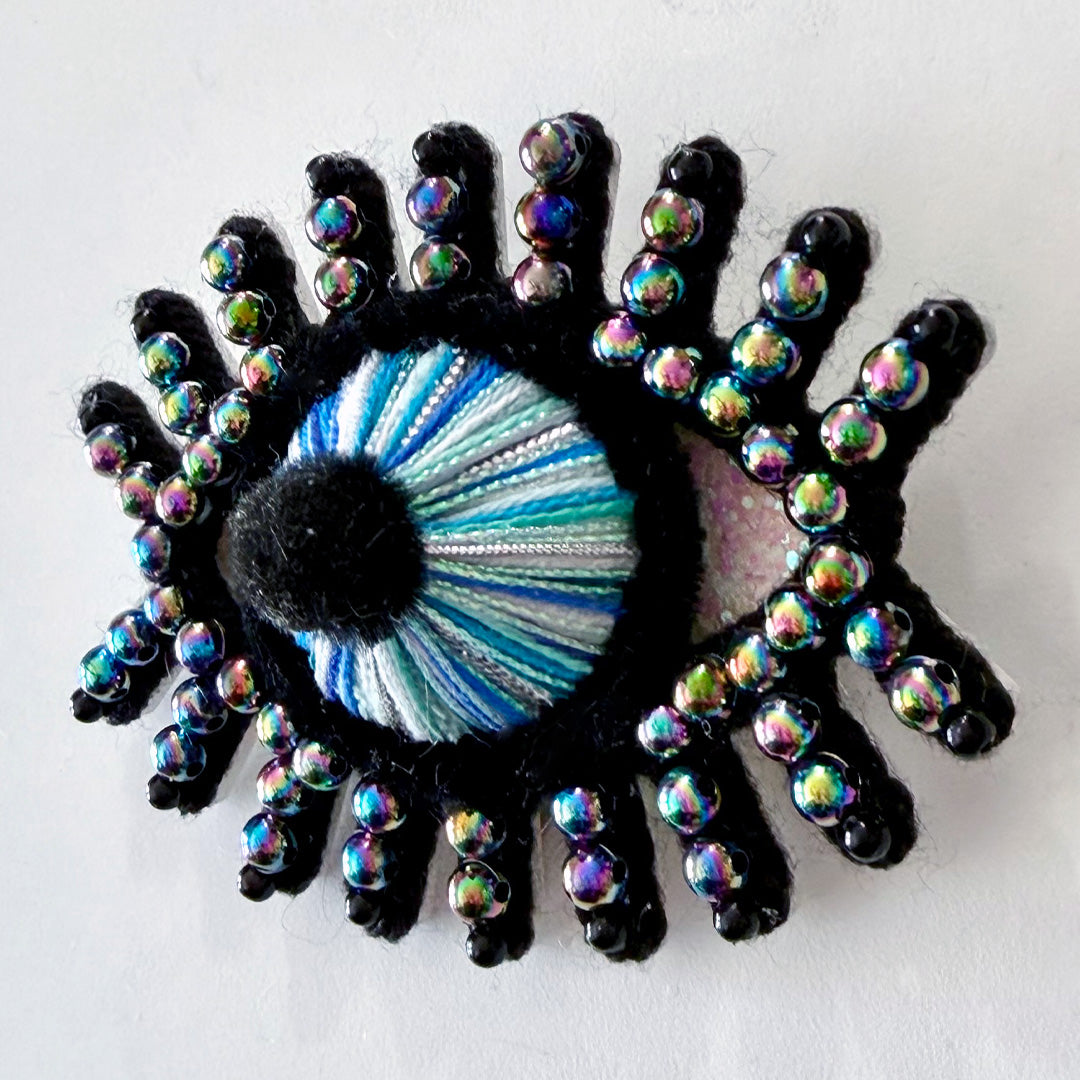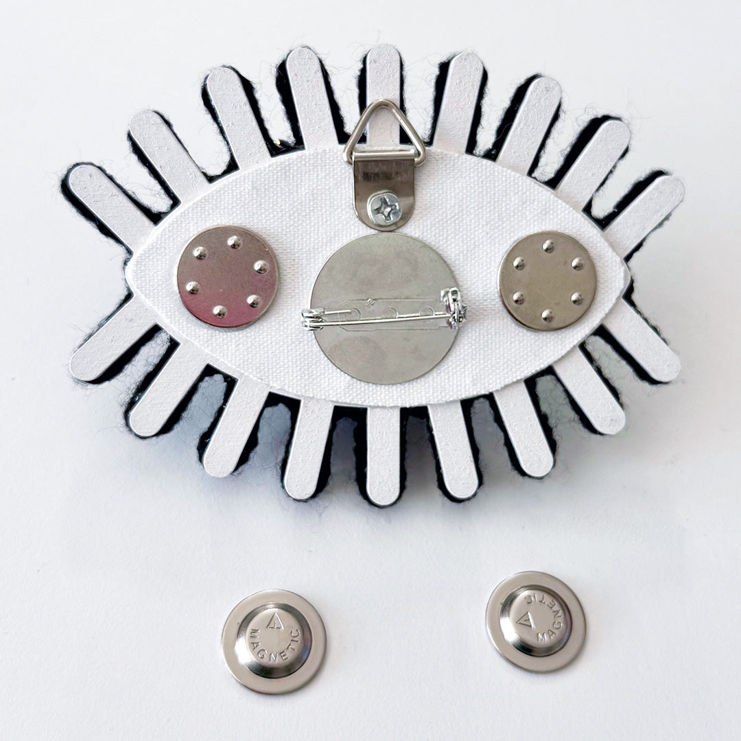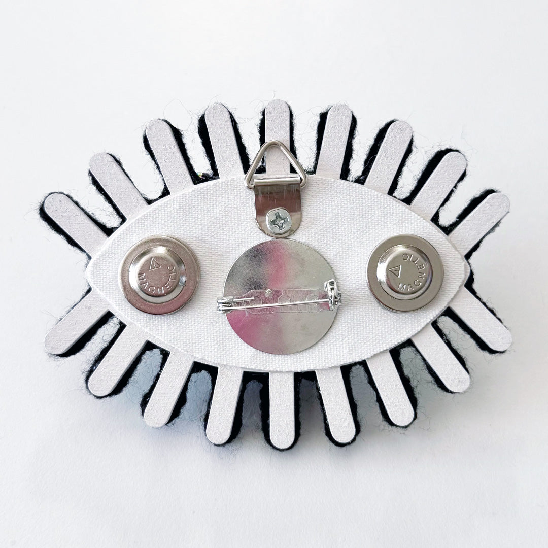 note: this original piece of art can be displayed as a wall hanging or worn as a brooch or put on a handbag. there is a loop on the back as well as a pin and two magnets.