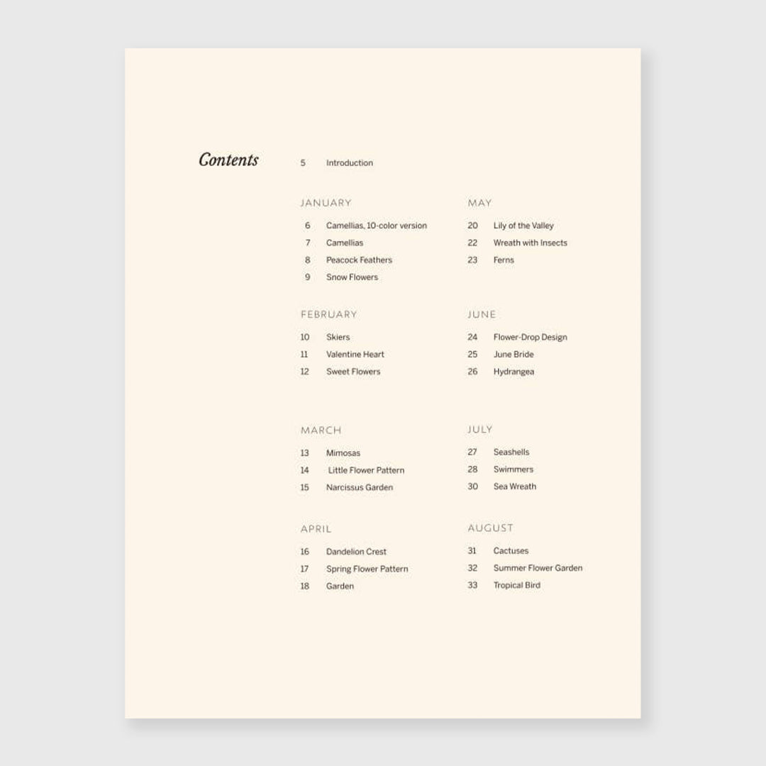 Yumiko's unique aesthetic comes through in these 38 stunning embroidery designs. In the style of Scandinavian design by way of Japan, these colorful and detailed designs follow the course of a year, with imagery inspired by each month. From snow flowers and skiing bears in January to lily of the valley in May, a collection of seed pods in October, and trumpeting angels in December. Each of the embroidery projects here are fairly large and detailed, making them more appropriate as hanging art than for other projects. And while no craft projects are offered here, some of the embroidery is photographed in scenes that hint toward how the designs can be used in other projects (such as on napkins, hats, bags, and aprons).