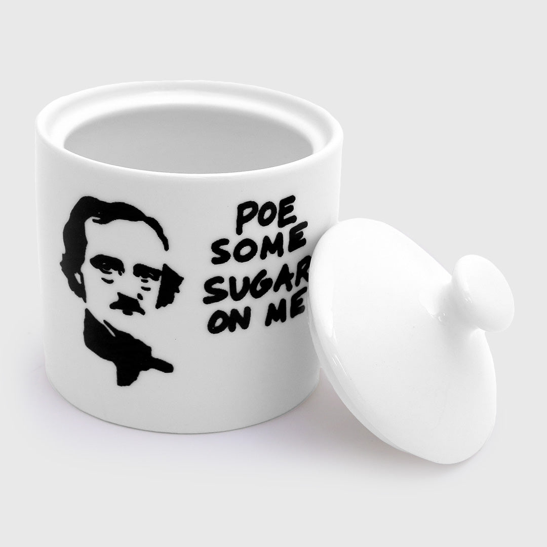 Poe some sugar on me sugar bowl is a great gift for any writer, reader, teacher, librarian or bibliophile...they'll be Raven. Bone china and made in Lenny Mud's New Jersey studio-kiln fired to over 1900 degrees with the design applied in lead free glazes. Safe to place in the dishwasher, made to be used and enjoyed.