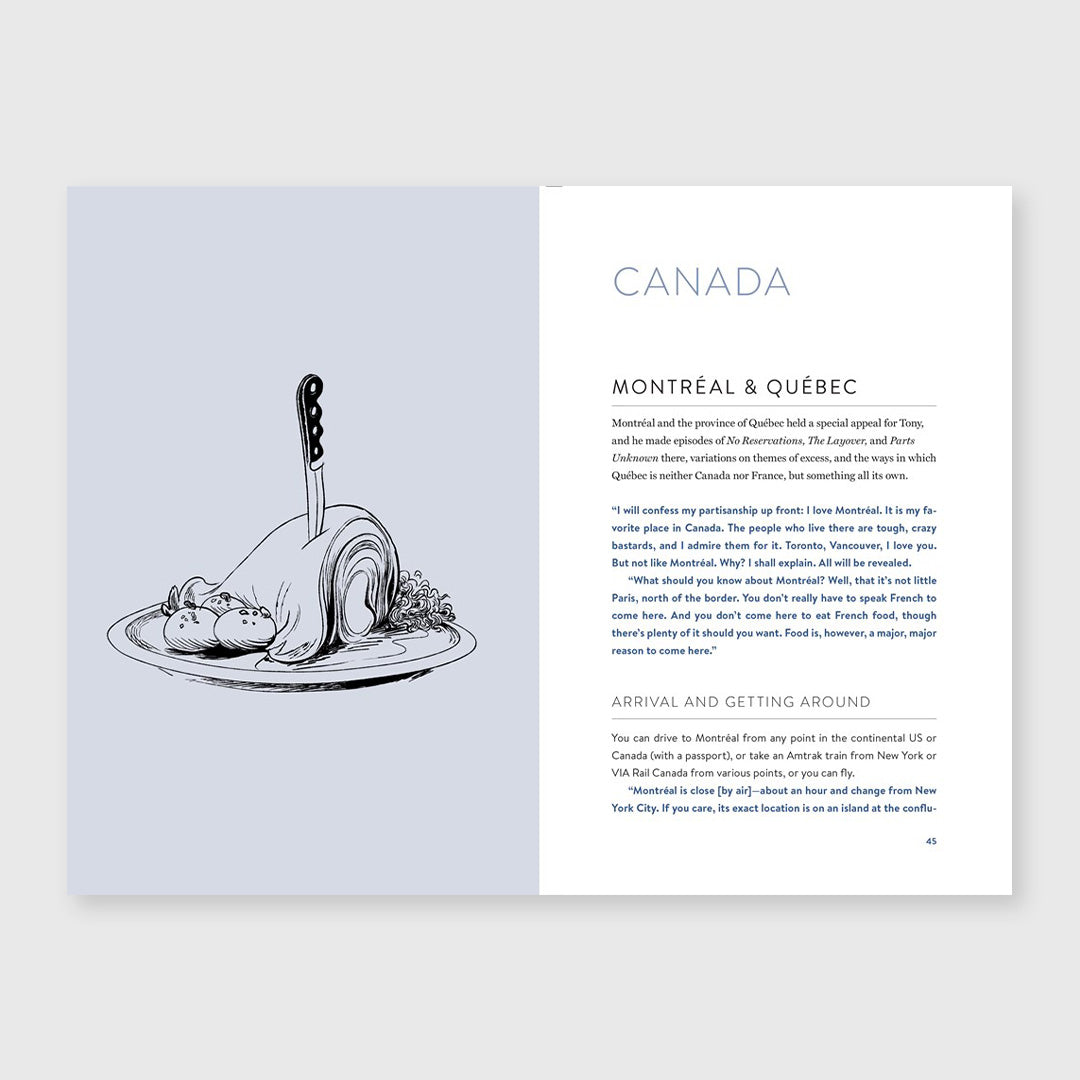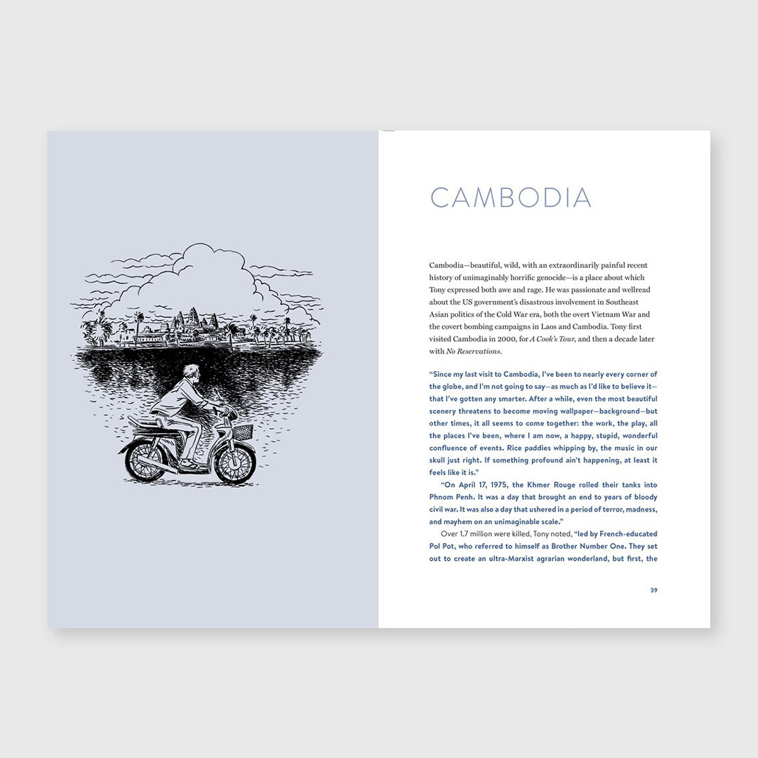 A guide to some of the world’s most interesting places, as seen and experienced by writer, television host, and relentlessly curious traveler Anthony Bourdain Anthony Bourdain saw more of the world than nearly anyone. His travels took him from the hidden pockets of his hometown of New York to a tribal longhouse in Borneo, from cosmopolitan Buenos Aires, Paris, and Shanghai to Tanzania’s utter beauty and the stunning desert solitude of Oman’s Empty Quarter—and many places beyond. In World Travel, a life of experience is collected into an entertaining, practical, fun, and frank travel guide that gives readers an introduction to some of his favorite places—in his own words. Featuring essential advice on how to get there, what to eat, where to stay, and, in some cases, what to avoid, World Travel provides essential context that will help readers further appreciate the reasons why Bourdain found a place enchanting and memorable.