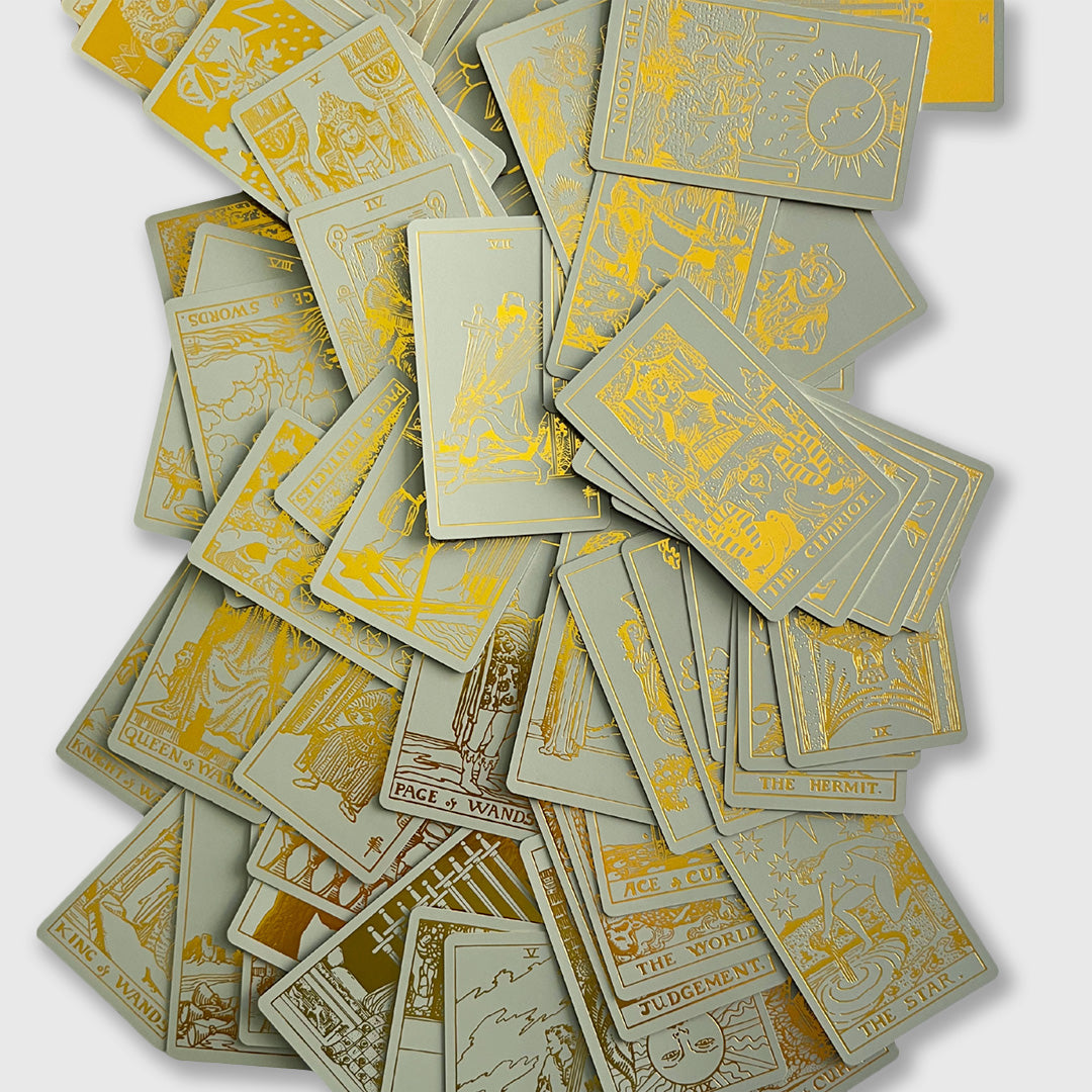 Unveil the mysteries of the universe with our exquisite Sage Edition Tarot Deck, where ancient wisdom meets modern elegance. Each card features shimmering gold foil accents that add a touch of opulence to every reading. These cards offer a luxurious feel and unparalleled durability, ensuring they stand the test of time and countless readings. The deck is complemented by an 88-page guidebook, beautifully designed to provide clear, insightful interpretations for both beginners and seasoned tarot enthusiasts. Whether you're seeking guidance, inspiration, or simply a deeper connection with your inner self, this Sage Edition Tarot Deck is your perfect companion on a journey of discovery.