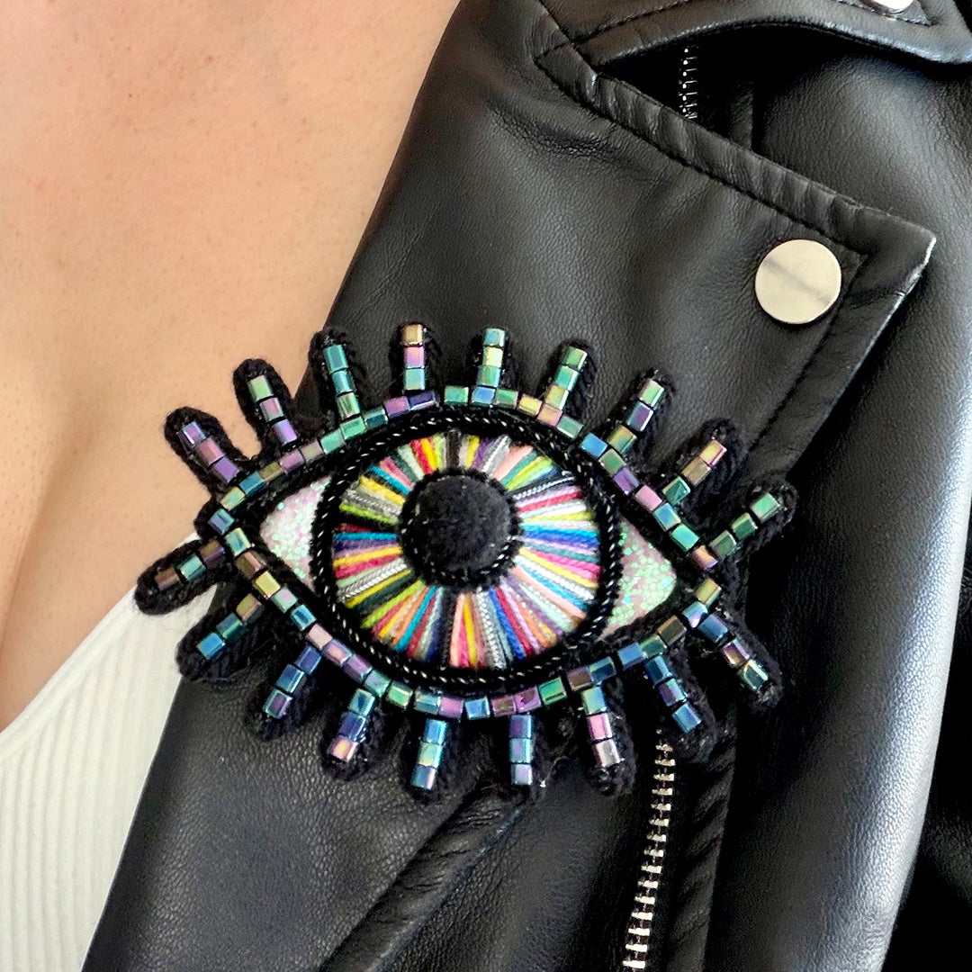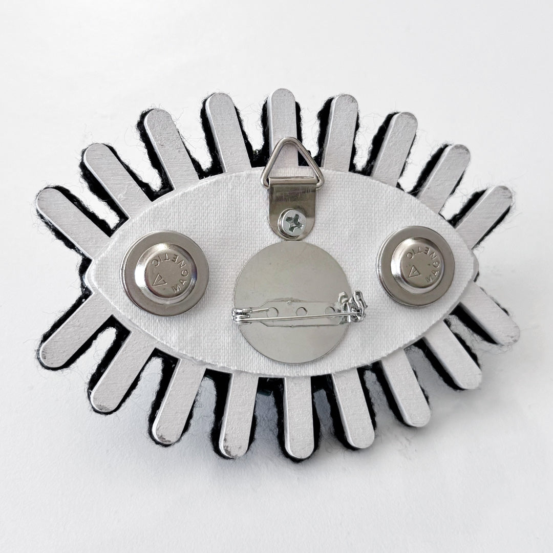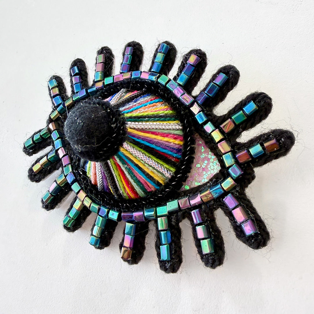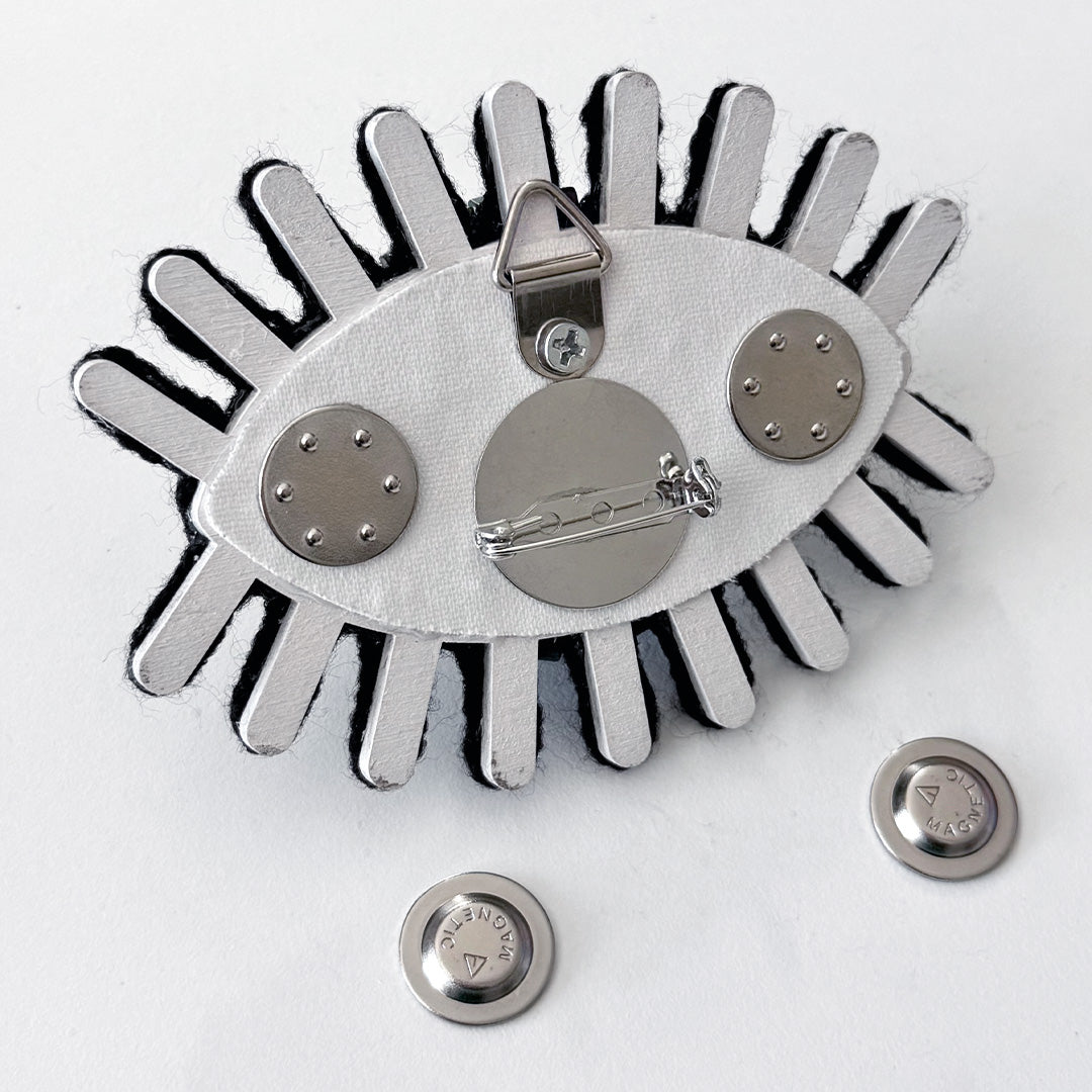 note: this original piece of art can be displayed as a wall hanging or worn as a brooch or put on a handbag. there is a loop on the back as well as a pin and two magnets.