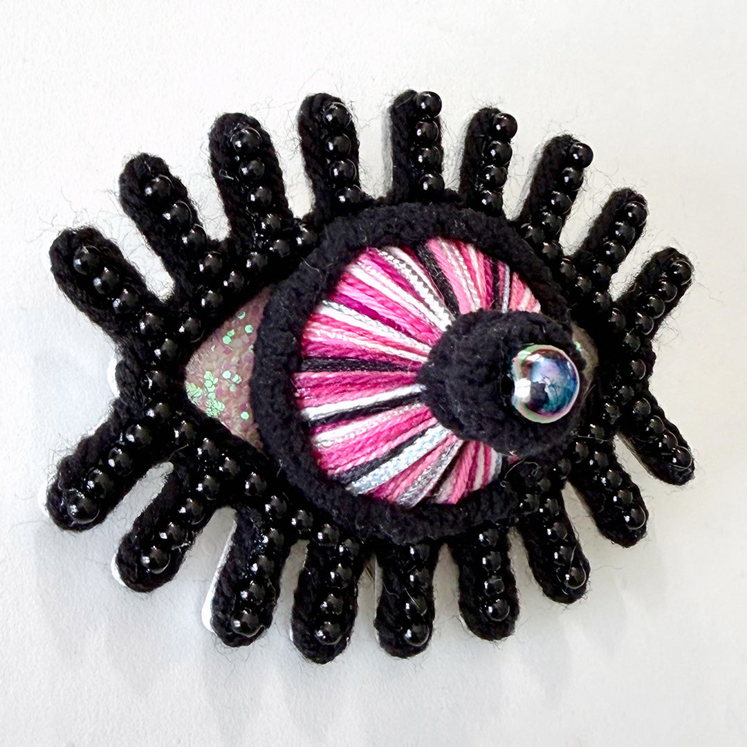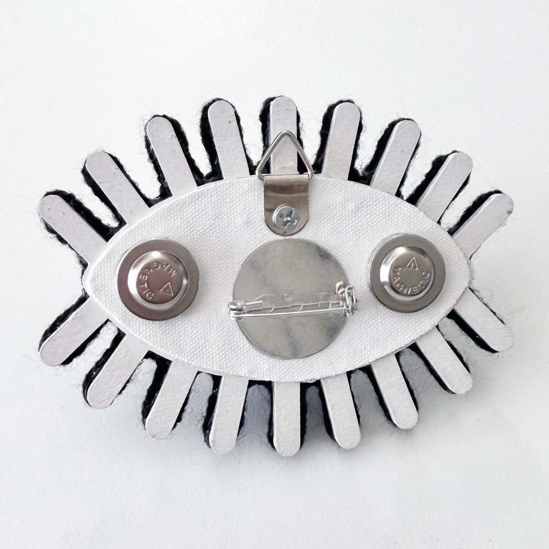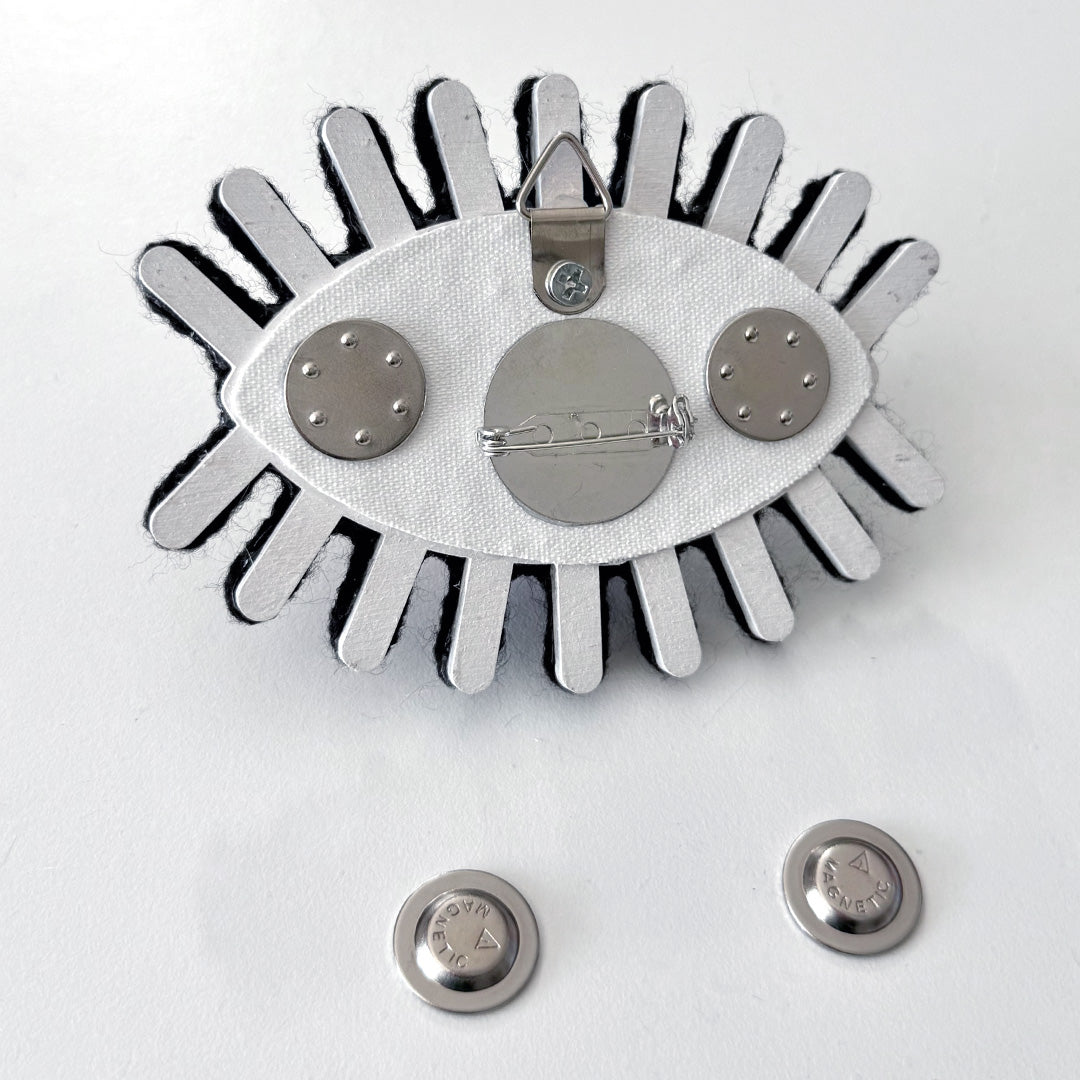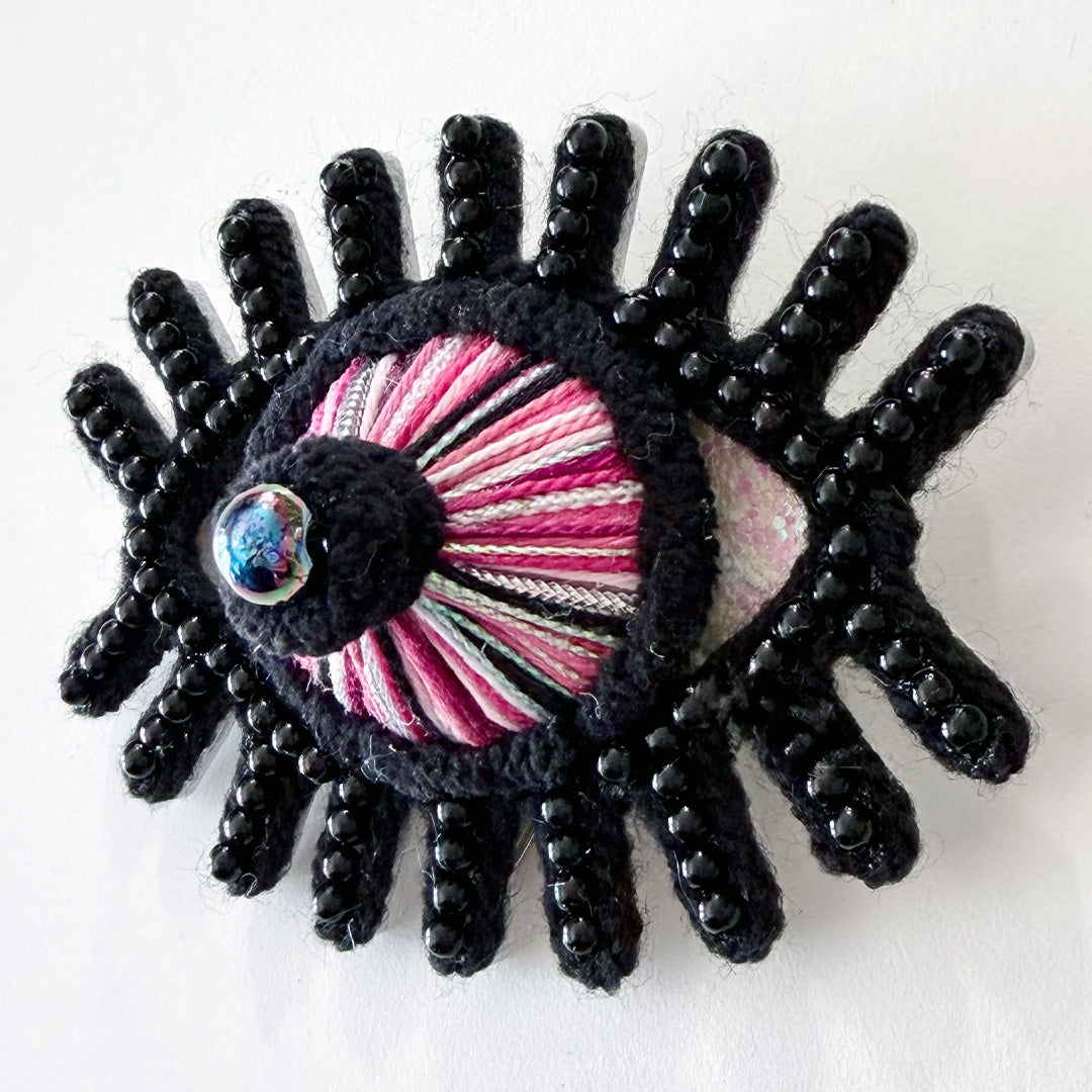 note: this original piece of art can be displayed as a wall hanging or worn as a brooch or put on a handbag. there is a loop on the back as well as a pin and two magnets.